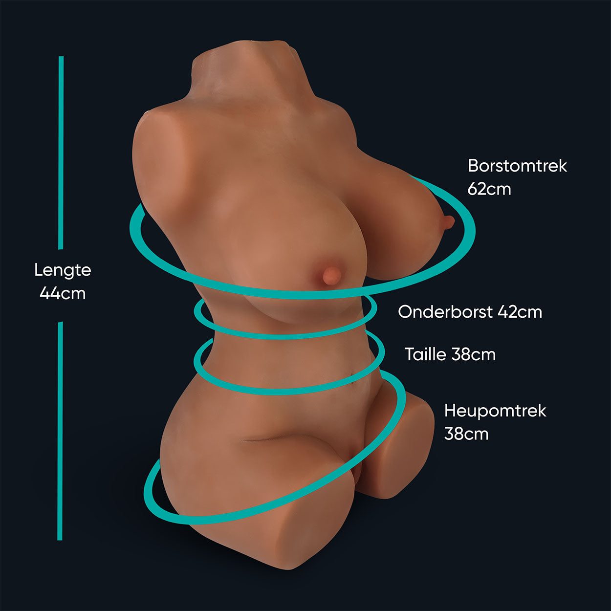 Voel het verschil van een huid die nauwelijks van echt te onderscheiden is. Van subtiele poriën tot zachte plooien en zelfs minuscule haarzakjes – alles klopt. Het zorgt voor een opwindende aanraking die je zintuigen prikkelt en je fantasie moeiteloos meesleept.